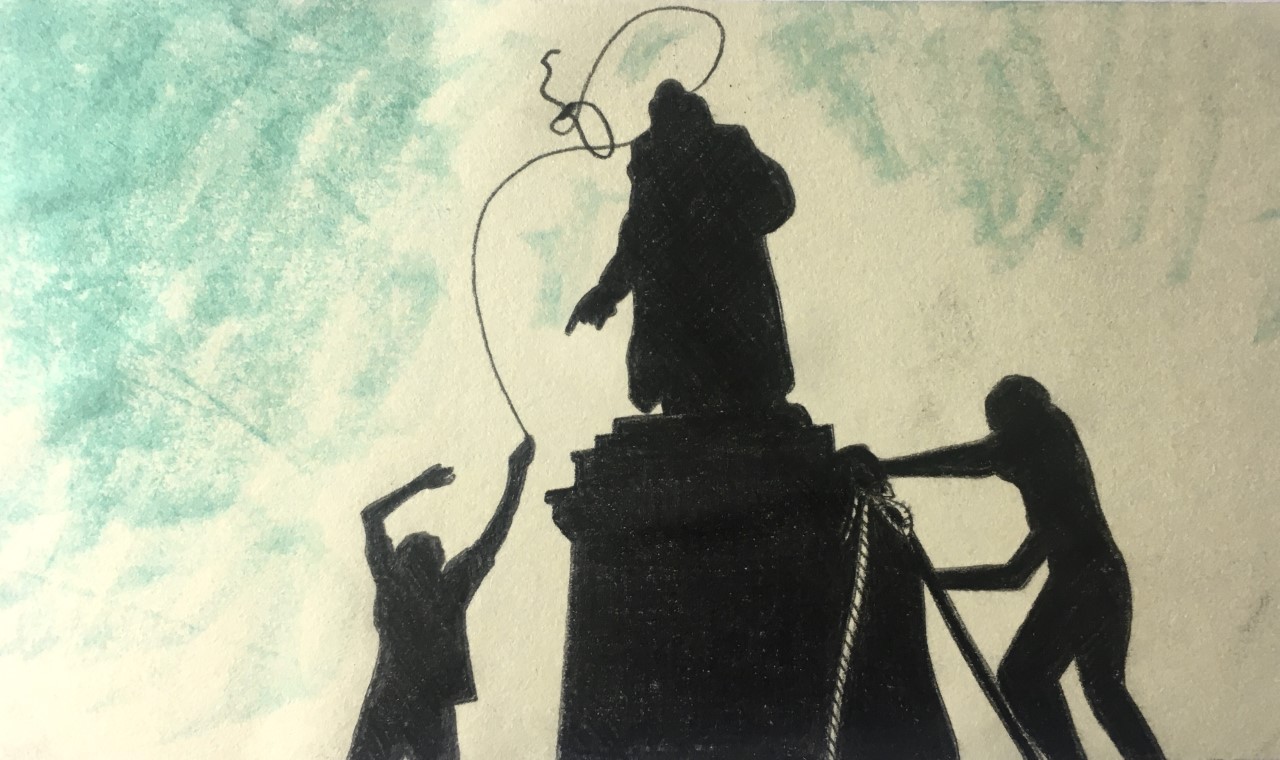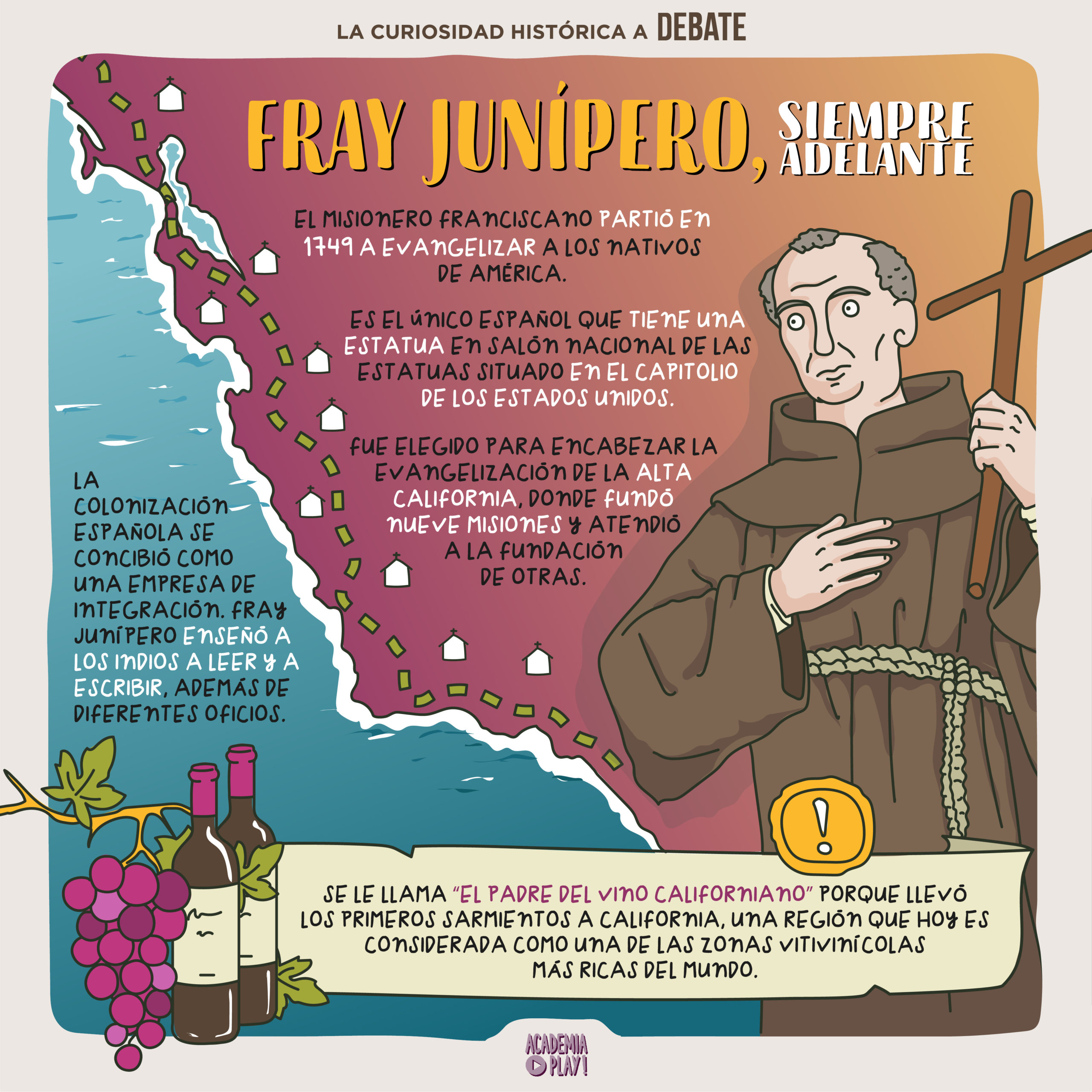 El misionero Fray Junípero es utilizado como cabeza de turco en un intento por denunciar los abusos durante la colonización de América.