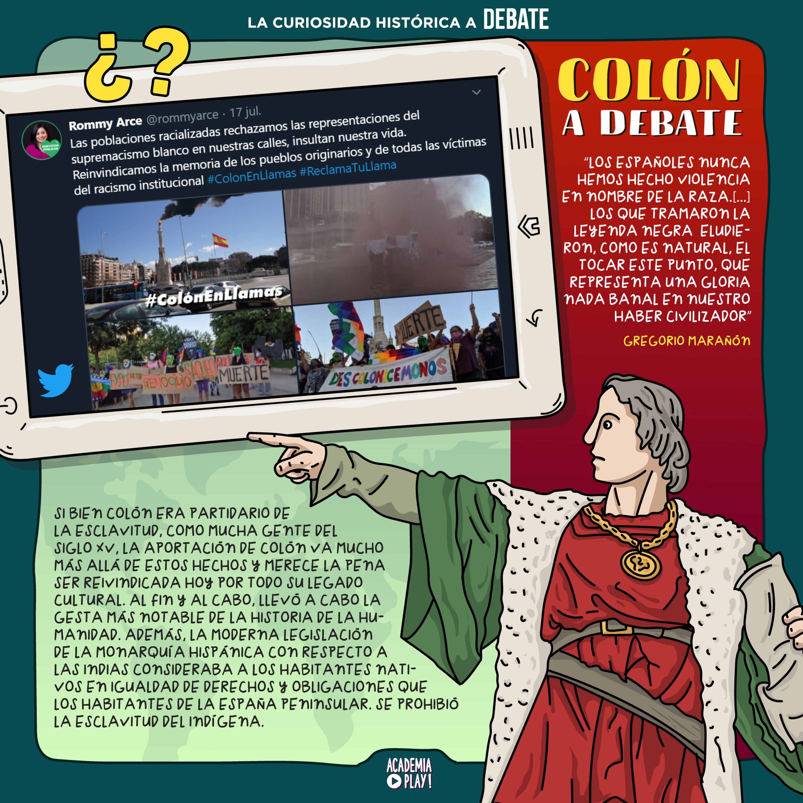 «Los españoles nunca hemos hecho violencia en nombre de la raza [...]. Los que tramaron la leyenda negra eludieron, como es natural, el tocar este punto, que representa una gloria nada banal en nuestro haber civilizador». Gregorio Marañón.
