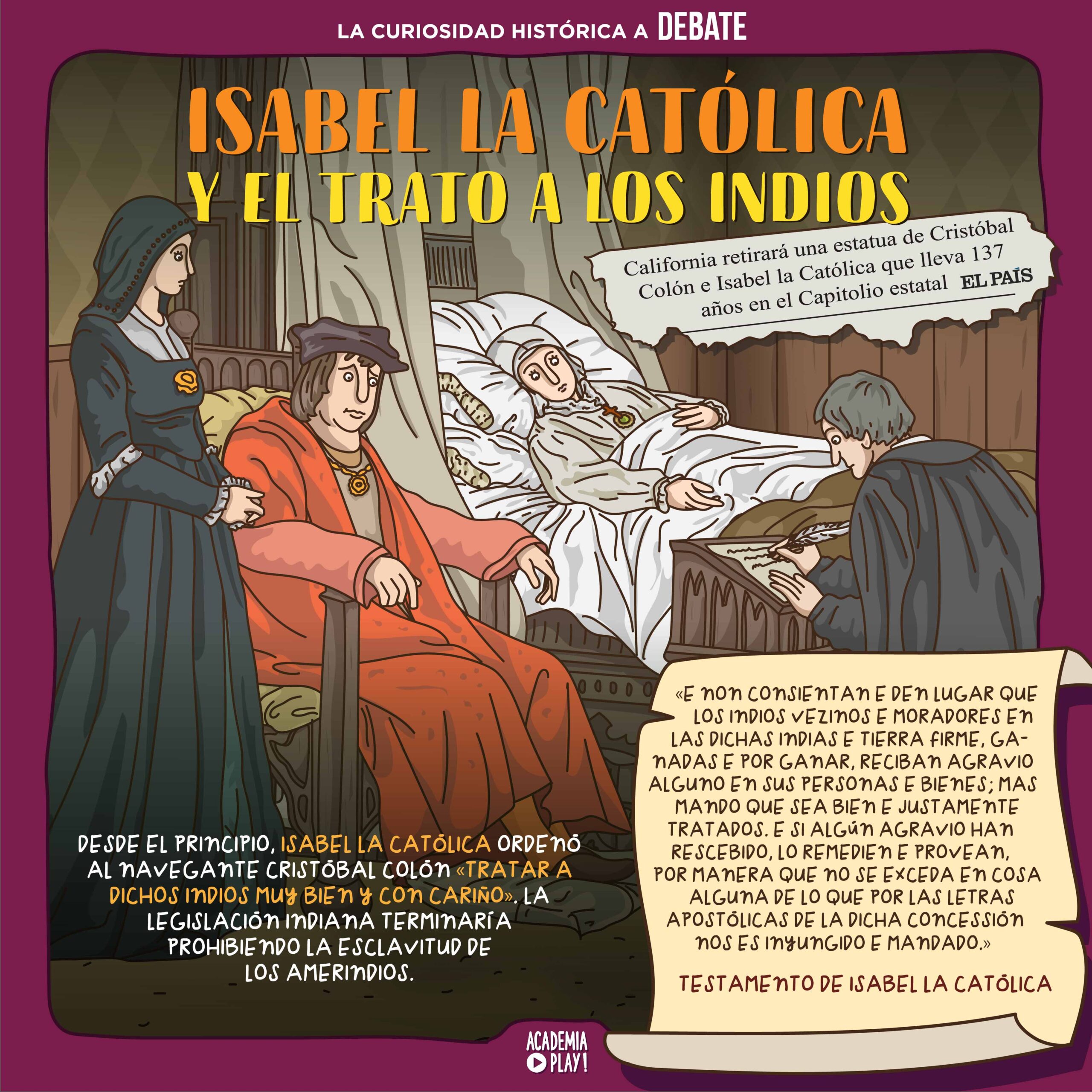 "Y no consientan ni den lugar que los indios reciban agravio alguno en sus personas y sus bienes". El testamento de Isabel la Católica frente al fanatismo de quienes piden retirar sus estatuas.