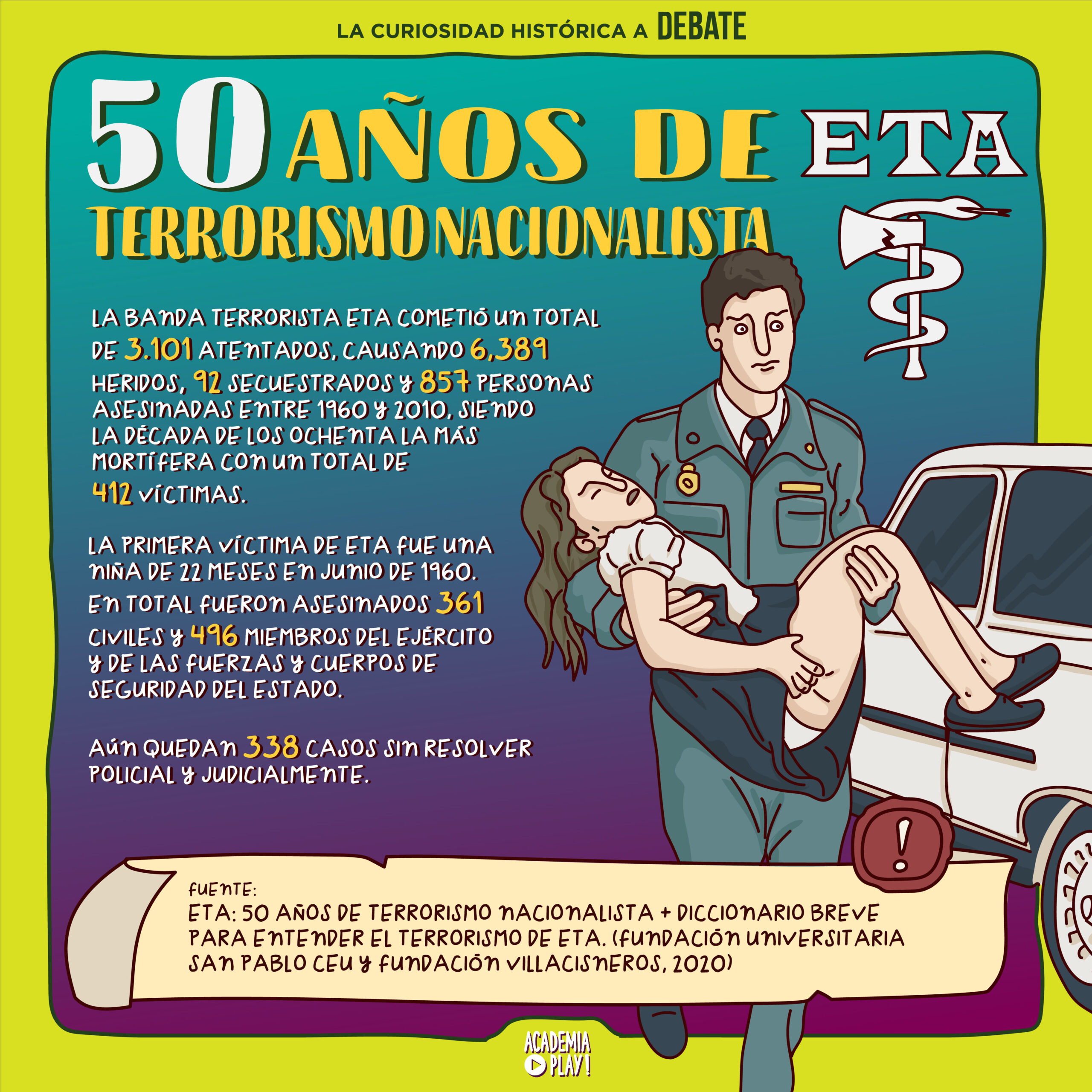Se cumplen 50 años del nacimiento del terrorismo nacionalista. La banda terrorista ETA acabó con la vida de más de 800 personas y todavía más de 300 casos están sin esclarecer.