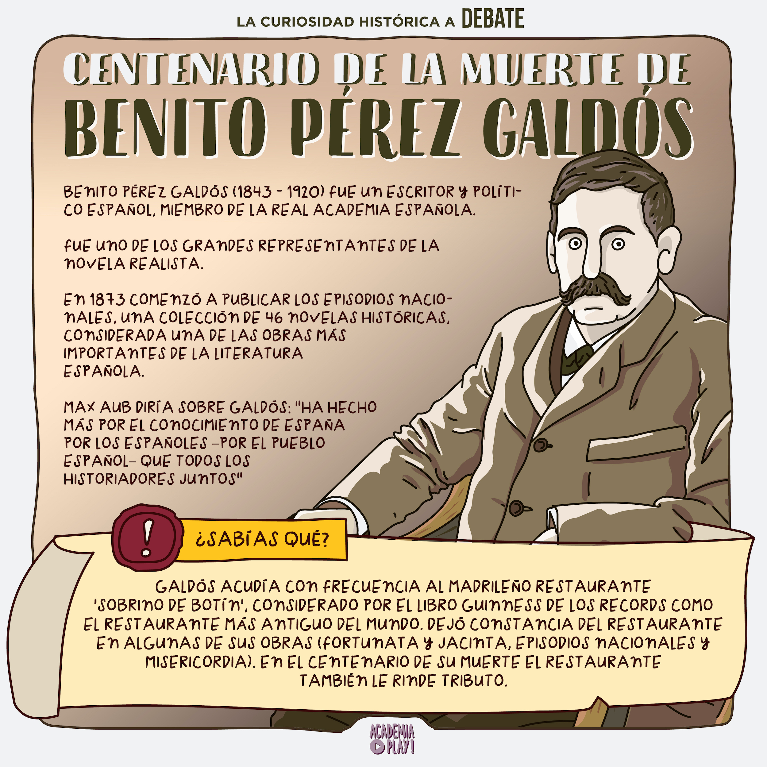 Se cumplen 100 años de la muerte de Benito Pérez Galdós, escritor y político español.