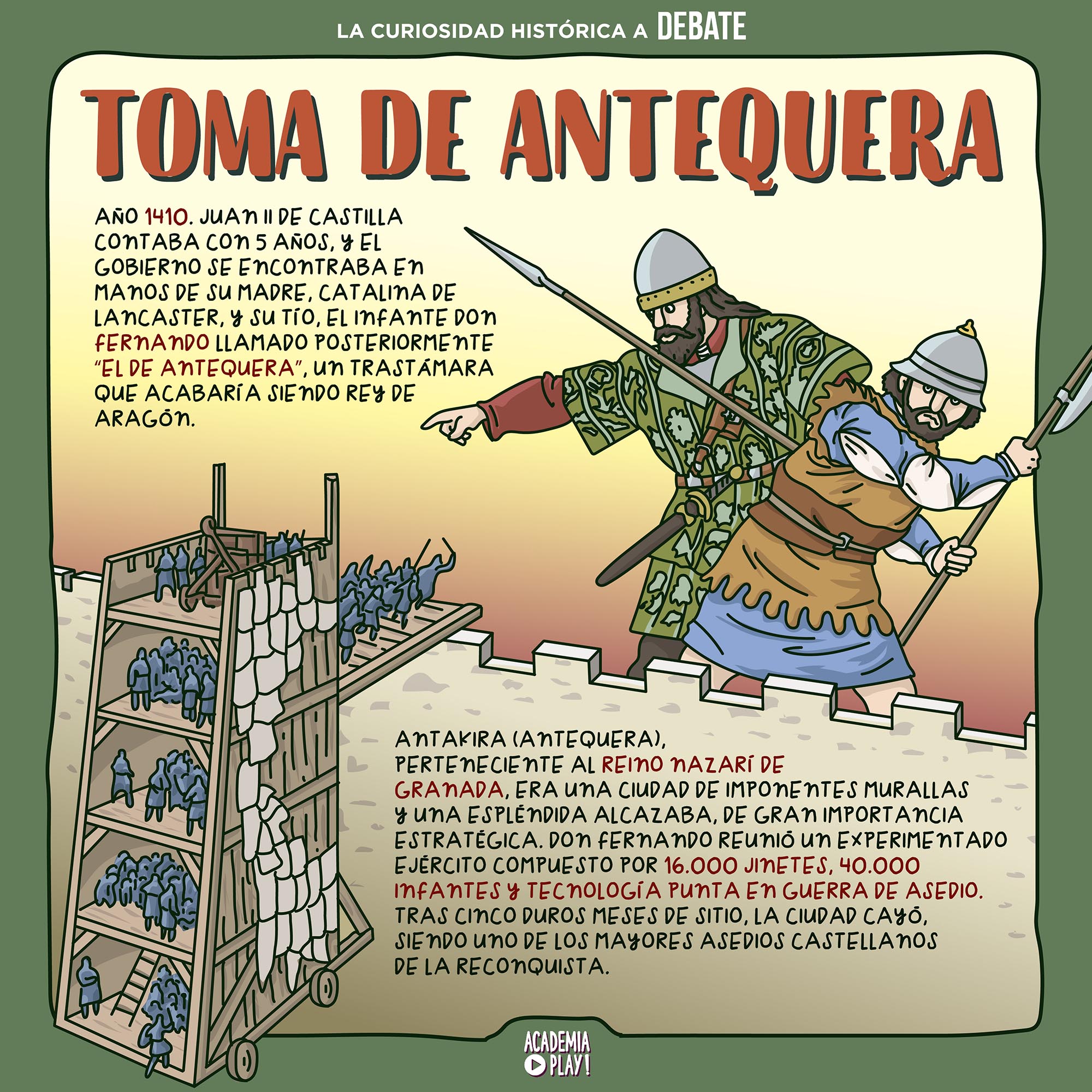 Las torres de asedio de Juan Gutiérrez permitieron a Fernando de Trastámara acabar con las fuertes defensas de la ciudad nazarí.