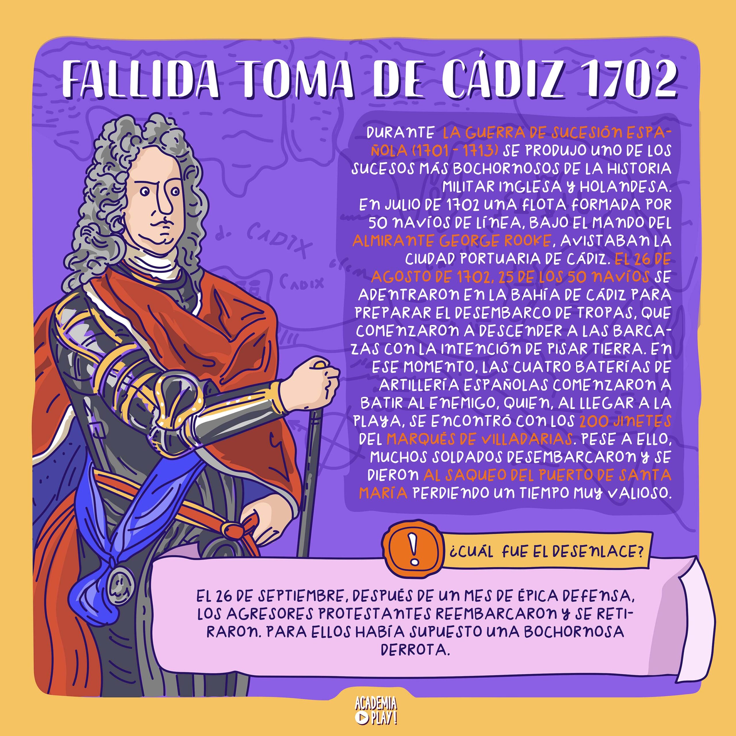 La Guerra de Sucesión española fue la excusa para que ingleses y neerlandeses tratasen de tomar la ciudad andaluza, saqueando por el camino Rota y El Puerto de Santa María.