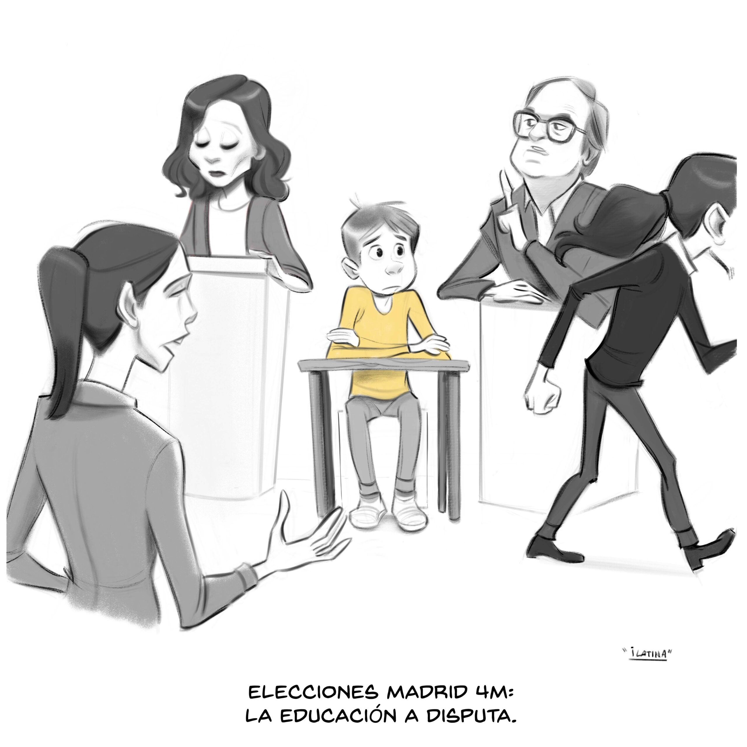 Los candidatos a la presidencia de la Comunidad de Madrid dibujan en sus campañas, marcadas por la crispación, modelos educativos antagónicos. El próximo 4M los madrileños elegirán cuál es el mejor para sus hijos.